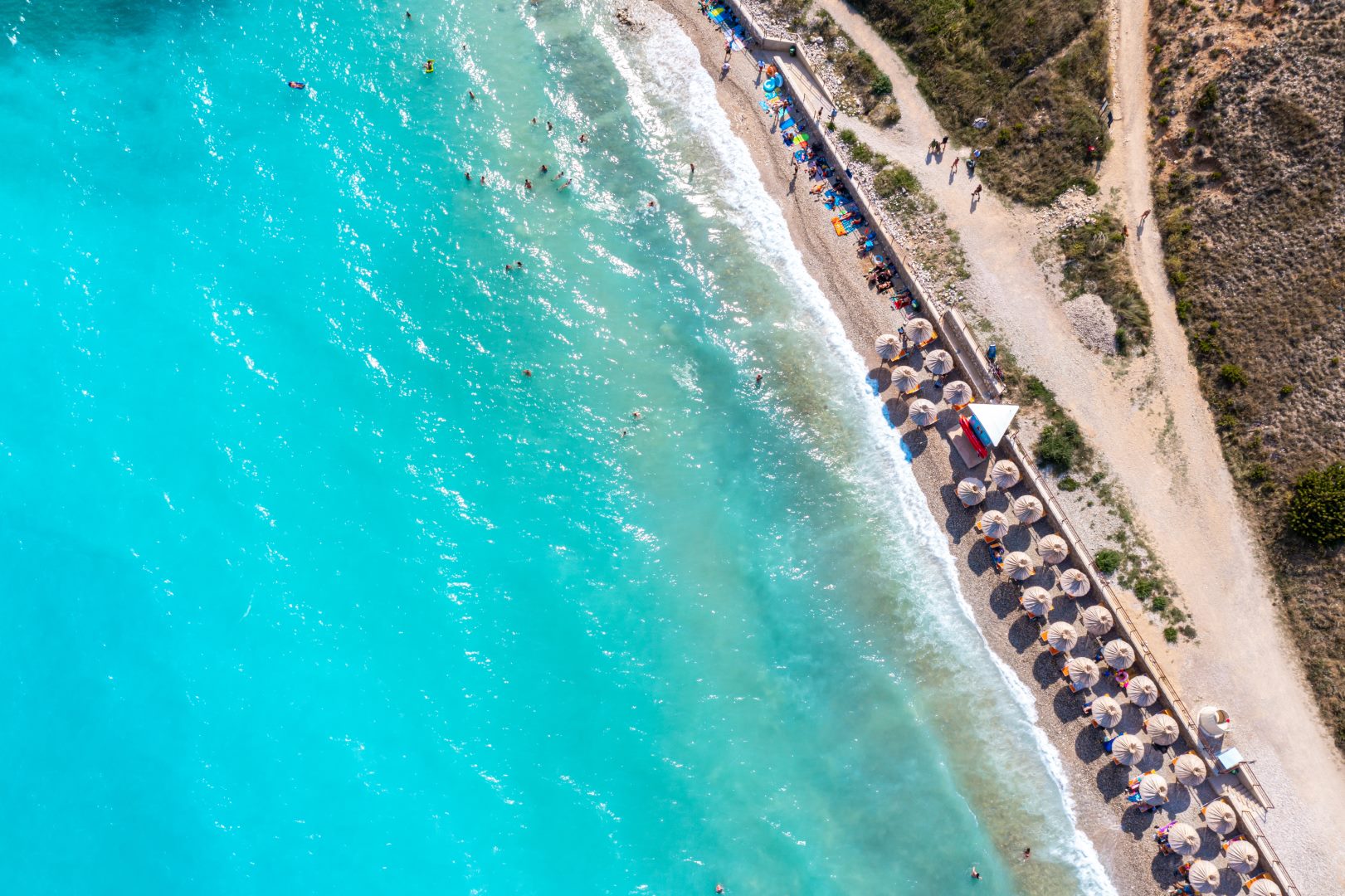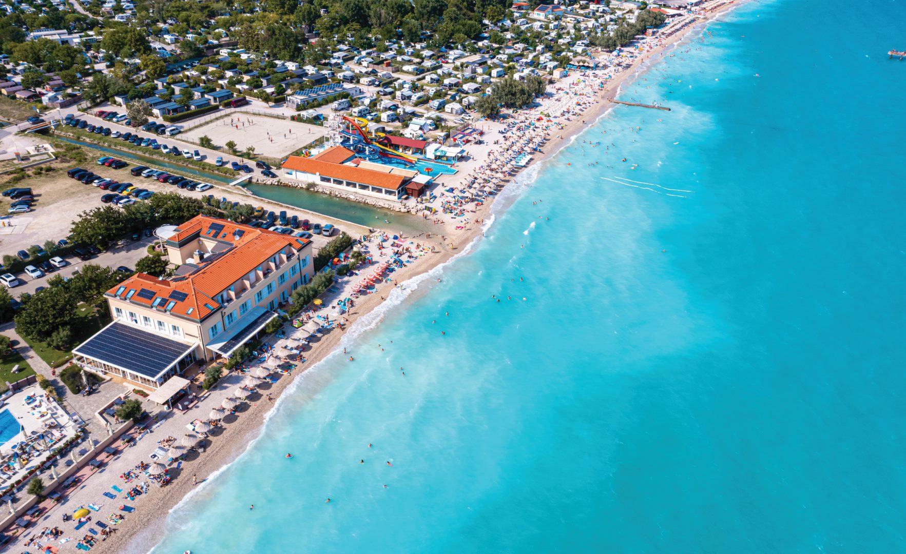 The most famous beach in Baška is Vela plaža, a long pebble beach stretching along the town promenade. Its accessibility, clear water and proximity to cafés and restaurants make it ideal for swimming, sunbathing and spending the day by the sea. The gently sloping shoreline also makes it suitable for families.